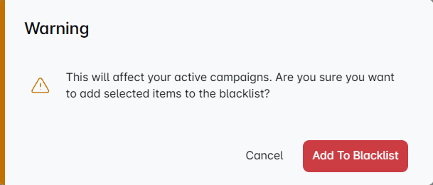 This will pop up if you have active campaigns and Leaderz will also blacklist the leads that are in these campaigns. So we are just warning you to make sure that you don't make a mistake.