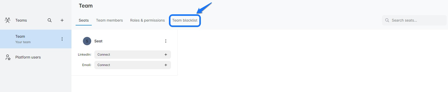A new page will open and you can select Blacklist for LinkedIn or for email: